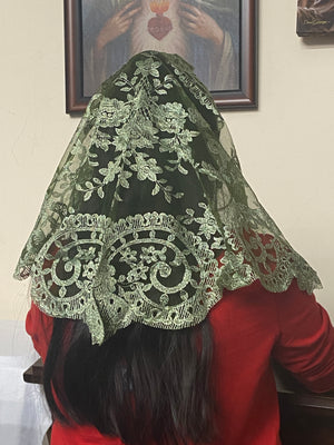 Military Green Olivia Lace Mantilla Chapel Spanish Veil 51"