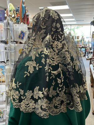 Gold and White Elaina Lace Mantilla Chapel Spanish Veil 51"