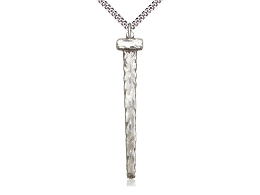 Sterling Silver Nail Pendant on a 24 inch Light Rhodium Heavy Curb Chain