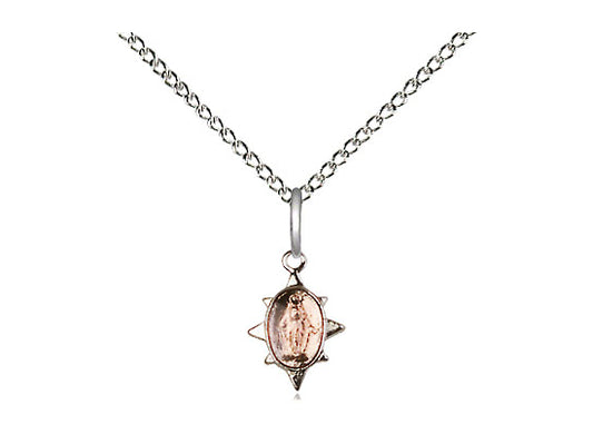 Sterling Silver Miraculous Pendant on a 18 inch Sterling Silver Light Curb Chain