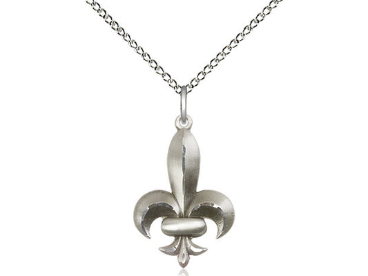 Sterling Silver Fleur de Lis Pendant on a 18 inch Sterling Silver Light Curb Chain