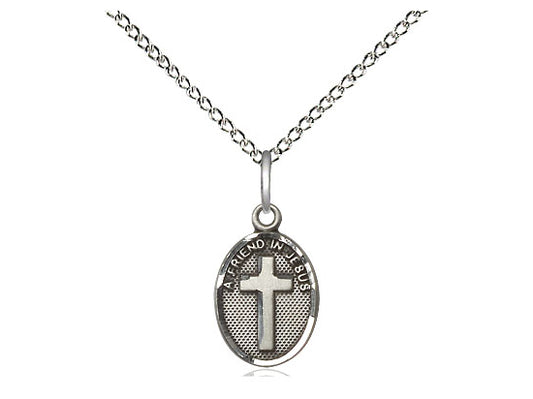 Sterling Silver Friend In Jesus Cross Pendant on a 18 inch Sterling Silver Light Curb Chain