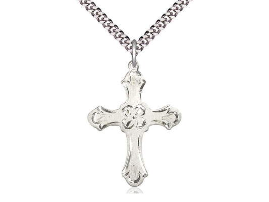 Sterling Silver Cross Pendant on a 24 inch Light Rhodium Heavy Curb Chain