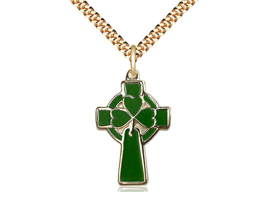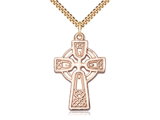 14kt Gold Filled Celtic Cross Pendant on a 24 inch Gold Plate Heavy Curb Chain