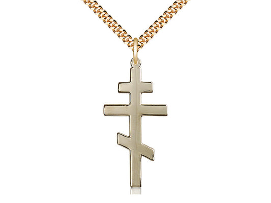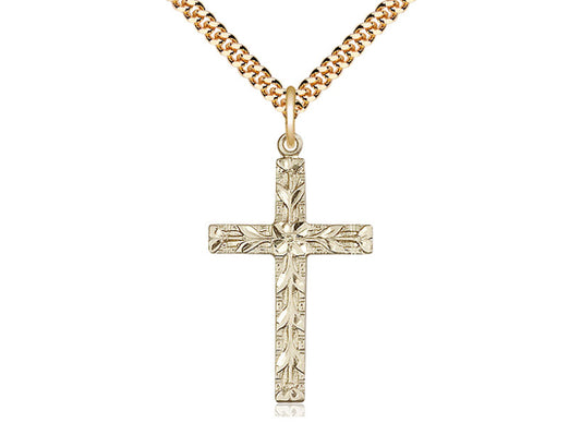 14kt Gold Filled Cross Pendant on a 24 inch Gold Plate Heavy Curb Chain