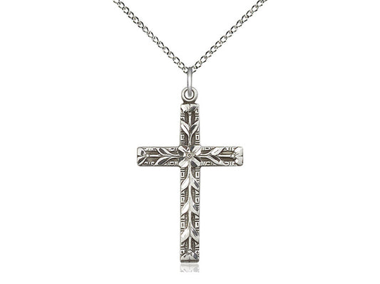 Sterling Silver Cross Pendant on a 18 inch Sterling Silver Light Curb Chain