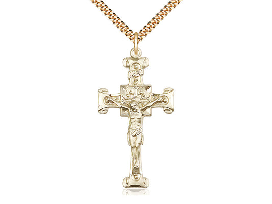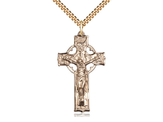 14kt Gold Filled Celtic Crucifix Pendant on a 24 inch Gold Plate Heavy Curb Chain