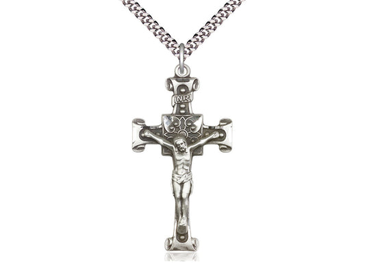 Sterling Silver Crucifix Pendant on a 24 inch Light Rhodium Heavy Curb Chain