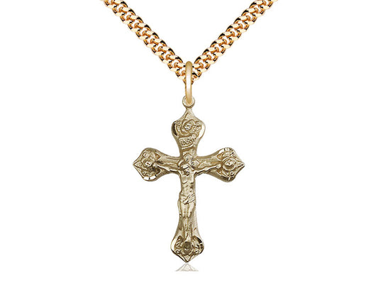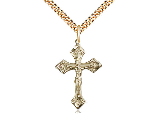 14kt Gold Filled Crucifix Pendant on a 24 inch Gold Plate Heavy Curb Chain