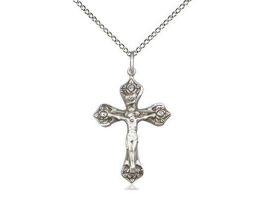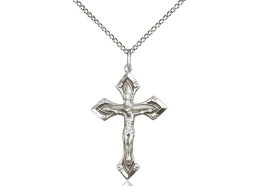 Sterling Silver Crucifix Pendant on a 18 inch Sterling Silver Light Curb Chain