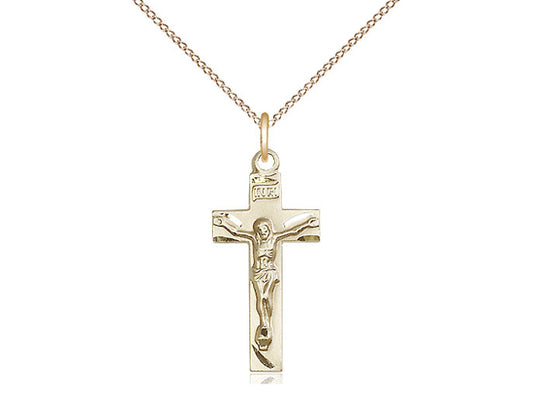 14kt Gold Filled Crucifix Pendant on a 18 inch Gold Filled Light Curb Chain
