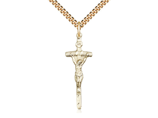 14kt Gold Filled Papal Crucifix Pendant on a 24 inch Gold Plate Heavy Curb Chain