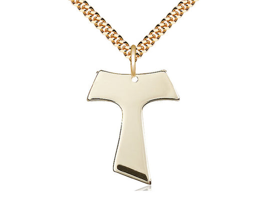 14kt Gold Filled Tau Cross Pendant on a 24 inch Gold Plate Heavy Curb Chain