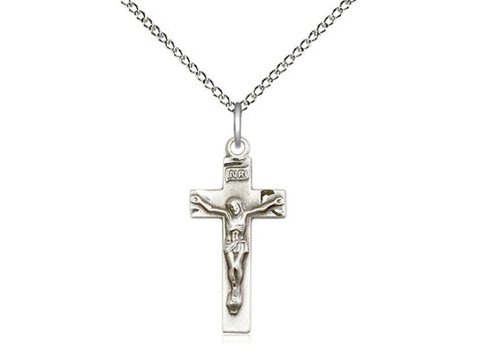 Sterling Silver Crucifix Pendant on a 18 inch Sterling Silver Light Curb Chain