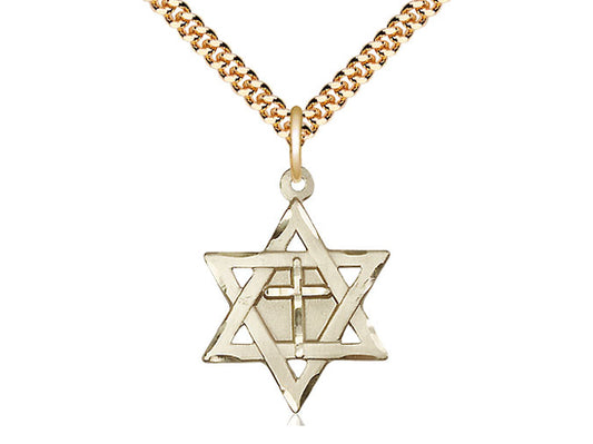 14kt Gold Filled Star of David w/ Cross Pendant on a 24 inch Gold Plate Heavy Curb Chain