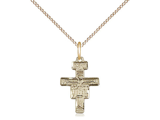 14kt Gold Filled San Damiano Crucifix Pendant on a 18 inch Gold Filled Light Curb Chain