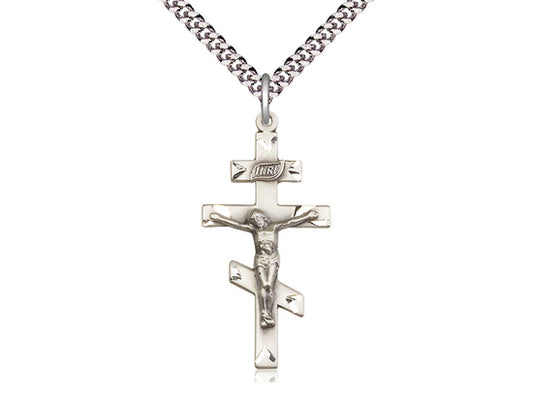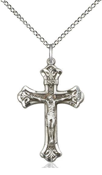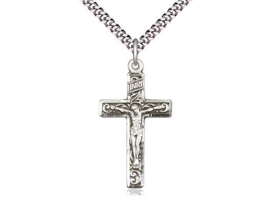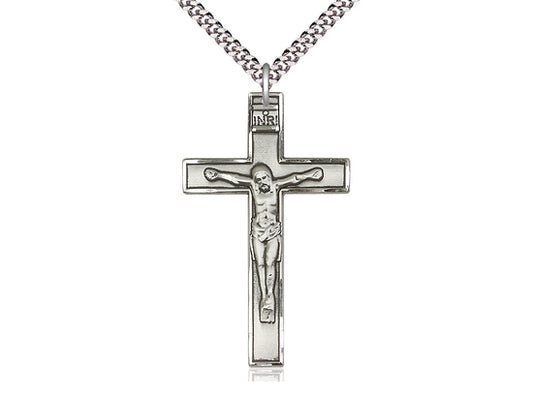 Sterling Silver Crucifix Pendant on a 24 inch Light Rhodium Heavy Curb Chain