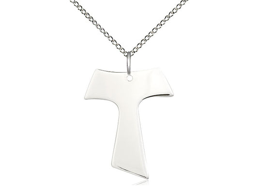 Sterling Silver Tau Cross Pendant on a 18 inch Sterling Silver Light Curb Chain