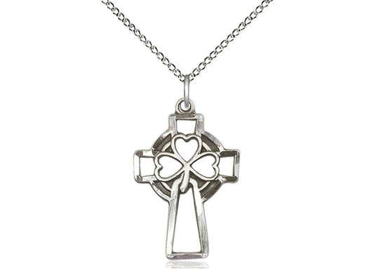 Sterling Silver Shamrock Cross Pendant on a 18 inch Sterling Silver Light Curb Chain