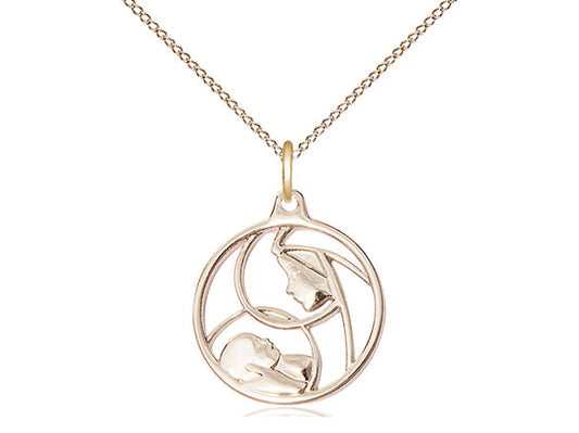 14kt Gold Filled Madonna & Child Pendant on a 18 inch Gold Filled Light Curb Chain