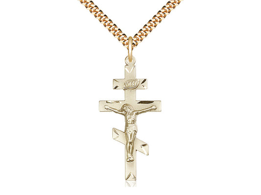 14kt Gold Filled Crucifix Pendant on a 24 inch Gold Plate Heavy Curb Chain
