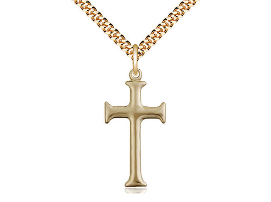 14kt Gold Filled Cross Pendant on a 24 inch Gold Plate Heavy Curb Chain