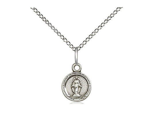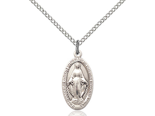 Sterling Silver Miraculous Pendant on a 18 inch Sterling Silver Light Curb Chain