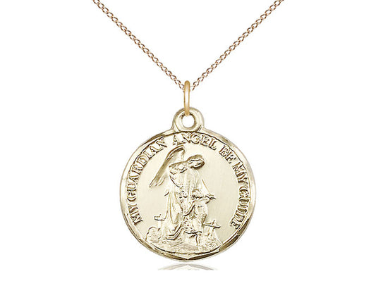 14kt Gold Filled Guardian Angel Pendant on a 18 inch Gold Filled Light Curb Chain