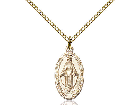 14kt Gold Filled Miraculous Pendant on a 18 inch Gold Filled Light Curb Chain