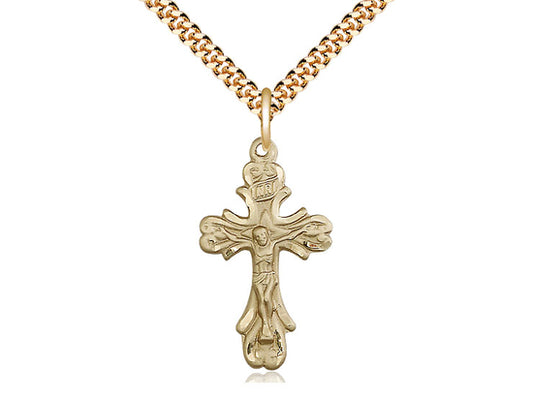 14kt Gold Filled Crucifix Pendant on a 24 inch Gold Plate Heavy Curb Chain