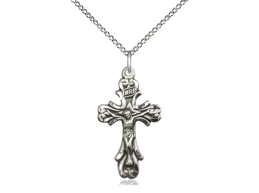 Sterling Silver Crucifix Pendant on a 18 inch Sterling Silver Light Curb Chain