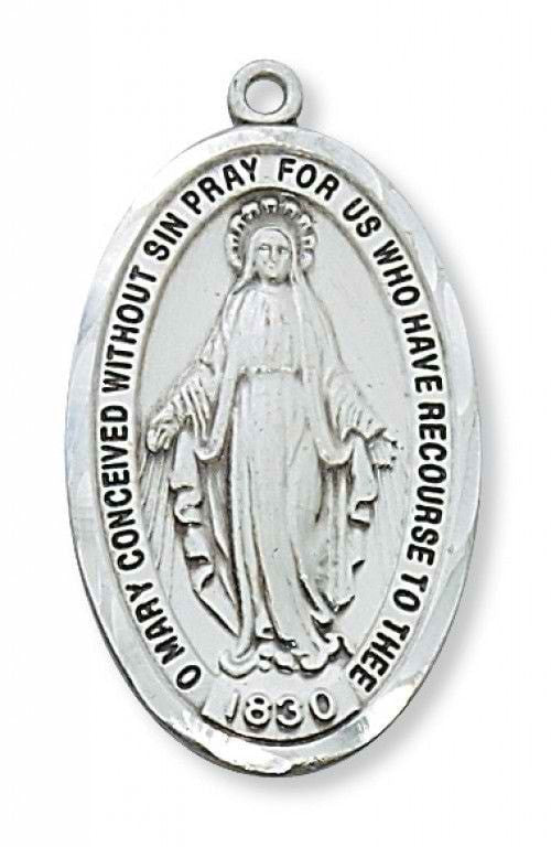 Silver Miraculous Medal 1-1/8" with chain 18".