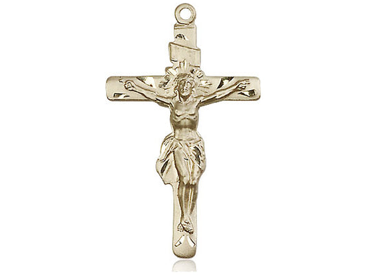 14kt Gold Filled Crucifix Pendant on a 24 inch Gold Plate Heavy Curb Chain