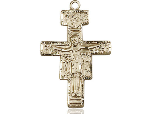 14kt Gold Filled San Damiano Crucifix Pendant on a 18 inch Gold Filled Light Curb Chain