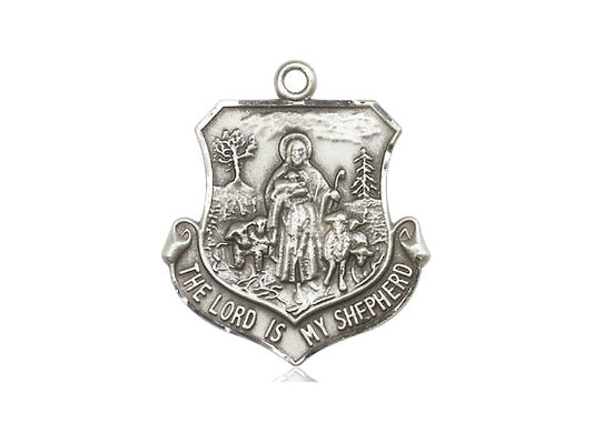 Sterling Silver Lord Is My Shepherd Pendant on a 18 inch Sterling Silver Light Curb Chain