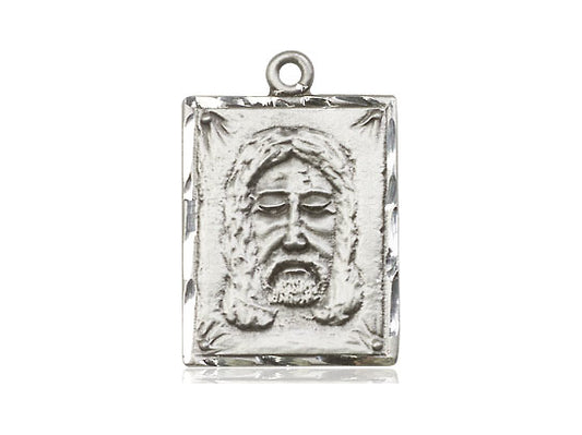Sterling Silver Holy Face Pendant on a 24 inch Light Rhodium Heavy Curb Chain
