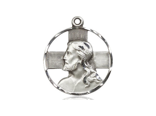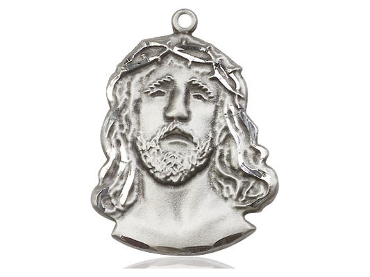 Sterling Silver Head of Christ Pendant on a 18 inch Sterling Silver Light Curb Chain