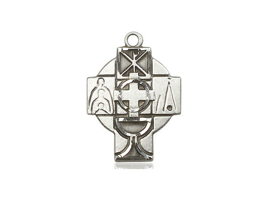 Two Sided Sterling Silver Confirmation / Chalice Medal Pendant on a 18 inch Sterling Silver Light Curb Chain