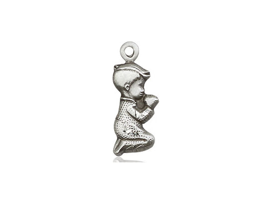 Sterling Silver Praying Boy Pendant on a 18 inch Sterling Silver Light Curb Chain