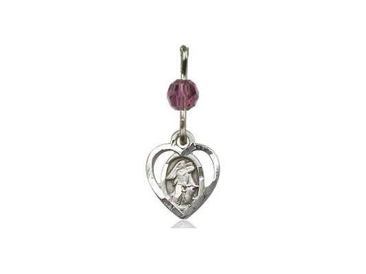 Sterling Silver Guardian Angel Pendant with an Amethyst bead on a inch Sterling Silver Light Curb Chain