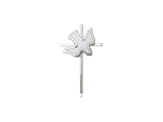 Sterling Silver Holy Spirit Pendant on a 24 inch Light Rhodium Heavy Curb Chain