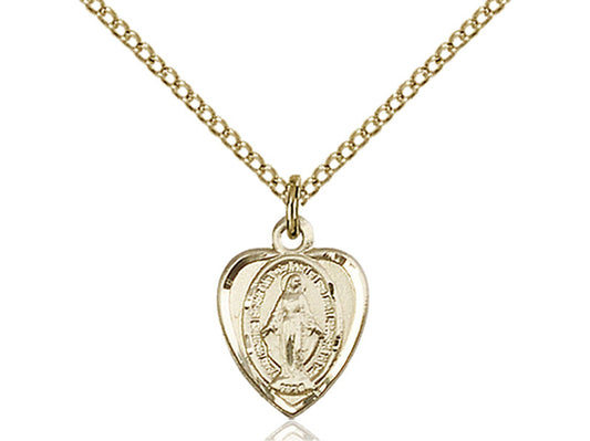 14kt Gold Filled Miraculous Medal Heart Pendant 1/2" with 18" chain