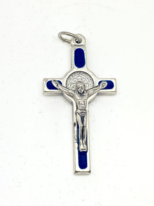 Blue Enamel St. Benedict Crucifix Medal 1 1/2"
