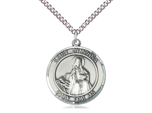 St Dymphna Sterling Silver Pendant on a 24 inch Sterling Silver Heavy Curb Chain 1"