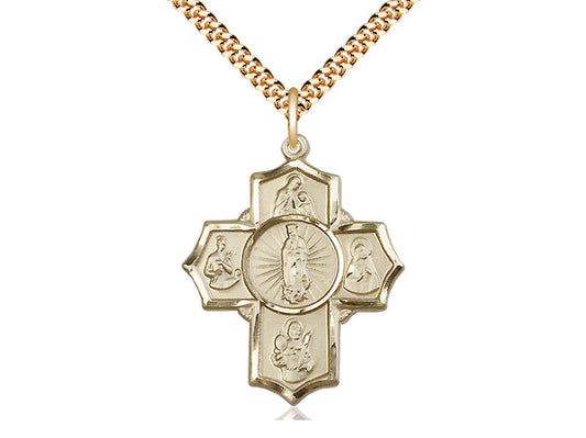 Tri-color Gold Plated Guadalupe Rosary Necklace