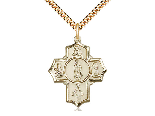 14kt Gold Filled Guadalupe Diego Pio Xav Nino Pendant on a 24 inch Gold Plate Heavy Curb Chain