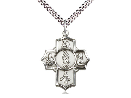 Sterling Silver 5-Way Our Lady of Guadalupe Pendant on a 18 inch Sterling Silver Light Curb Chain