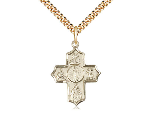 14kt Gold Filled 5-Way Our Lady of Guadalupe Pendant on a 24 inch Gold Plate Heavy Curb Chain