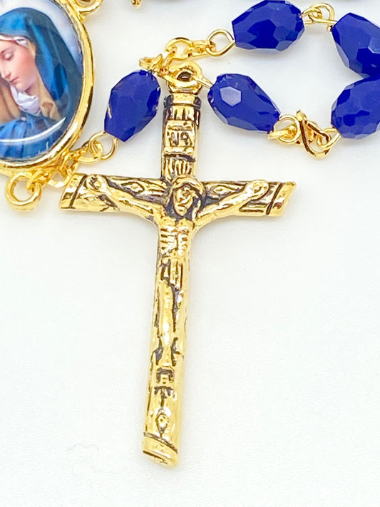 Seven Sorrows Blue Crystal Rosary ( Gold)