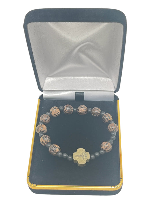 Striped Wood Children’s Rosary Bracelet (8mm)